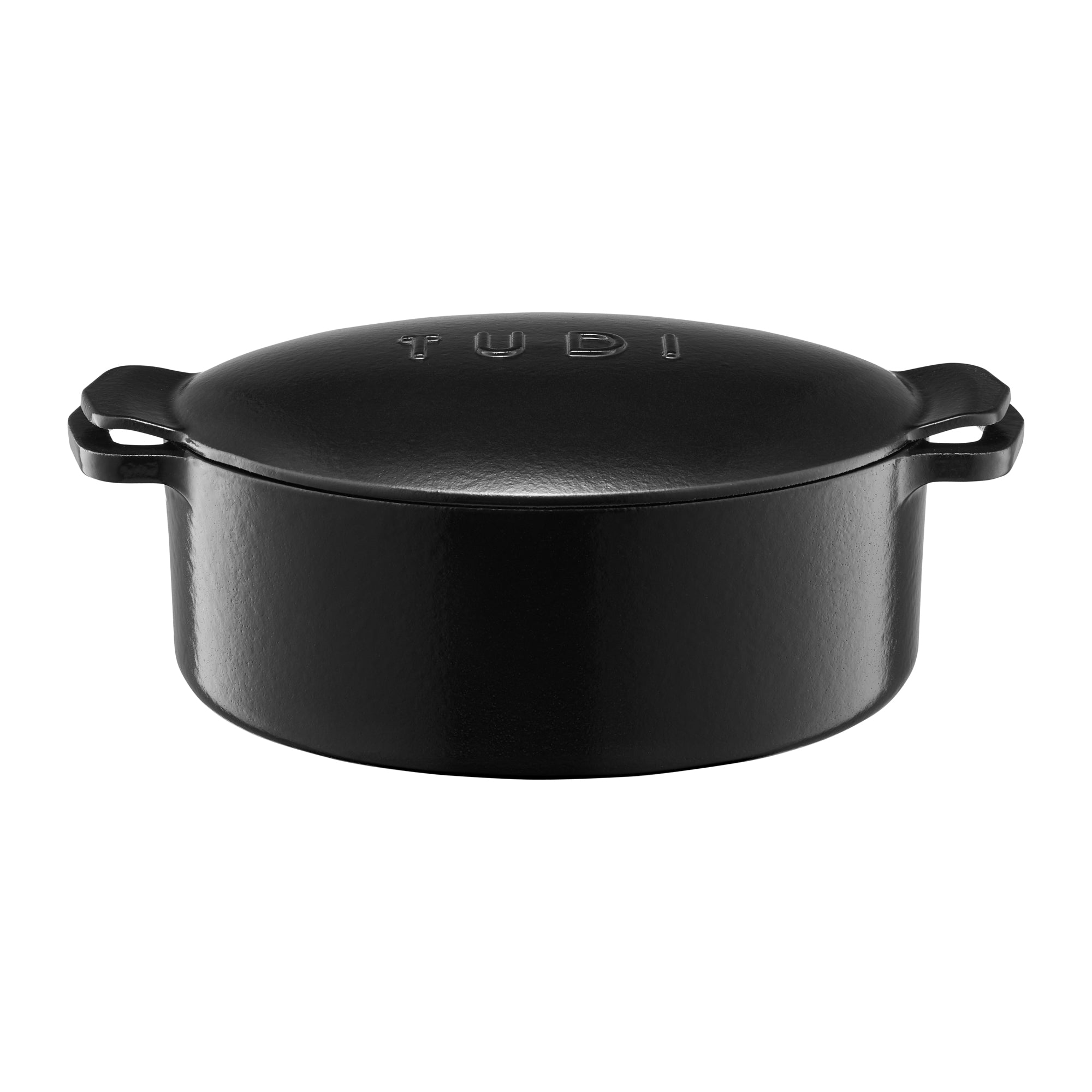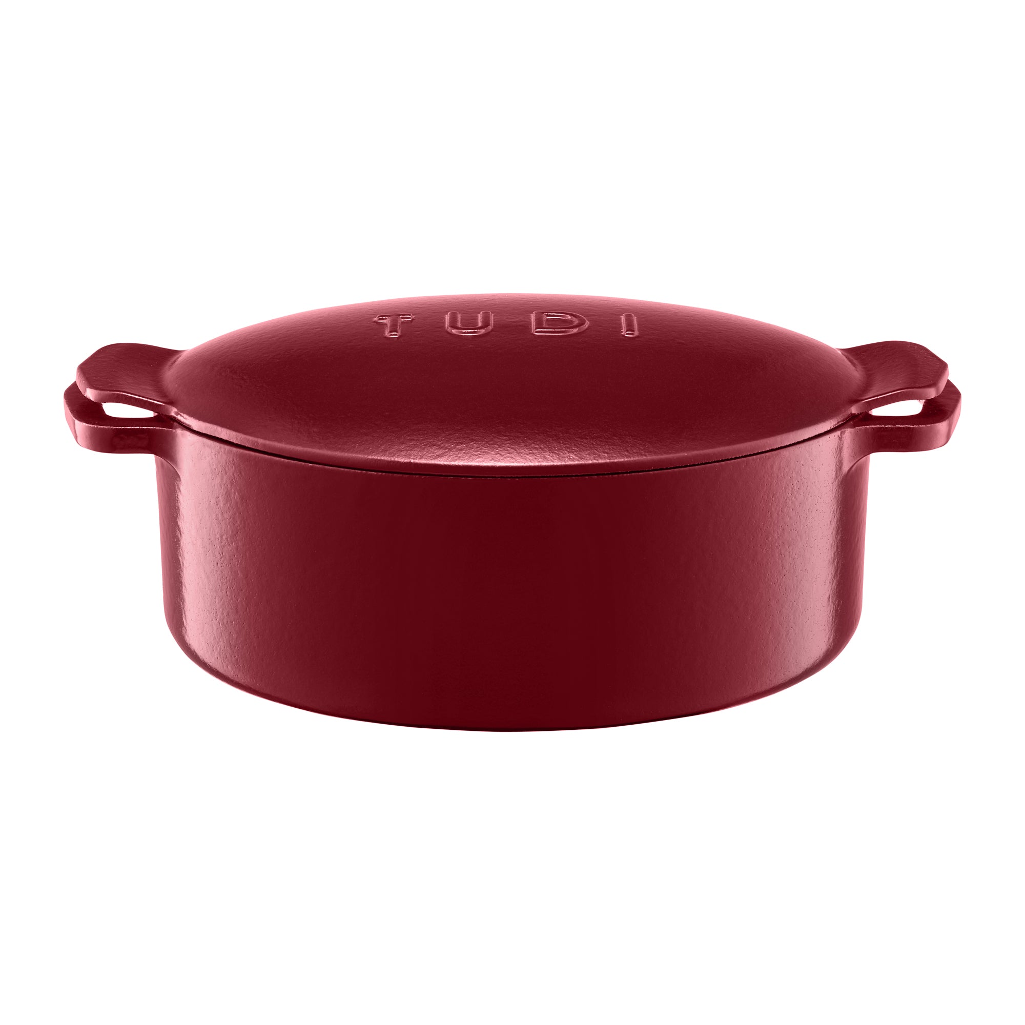 Używamy emalii o gładkiej, ale lekko chropowatej strukturze. Dzięki temu jedzenie bardzo słabo przywiera do produktów TUDI! Przywieranie w naszych naczyniach jest znacznie mniejsze niż w przypadku żeliwa innych producentów, choć większe niż na teflonie. Jednakże gotowanie na teflonie nie jest zdrowe jeśli nie wymieniamy naczyń minimum raz na 2 lata.